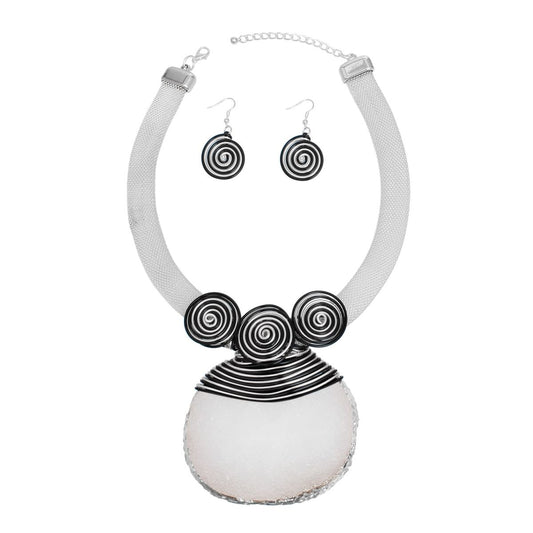Pendant Black Druzy Stone Wire Tribal Necklace