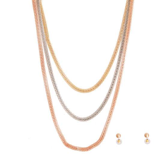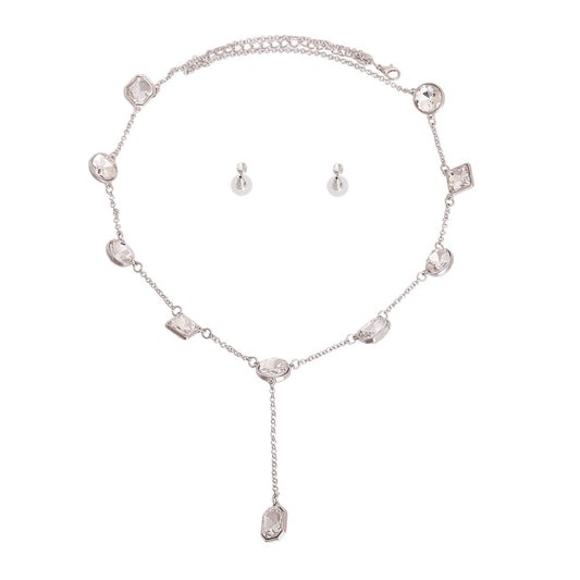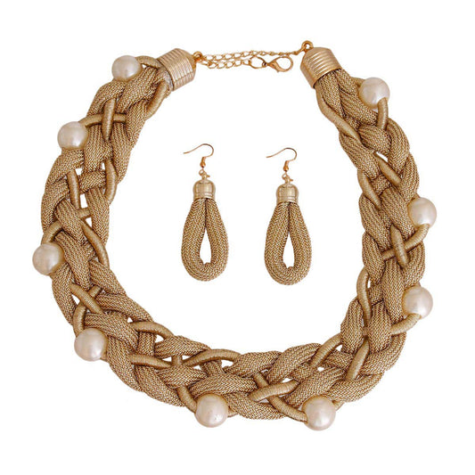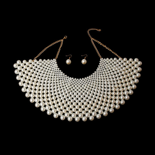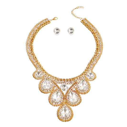Gold and Teardrop Crystal Rhinestone Bib Necklace Set