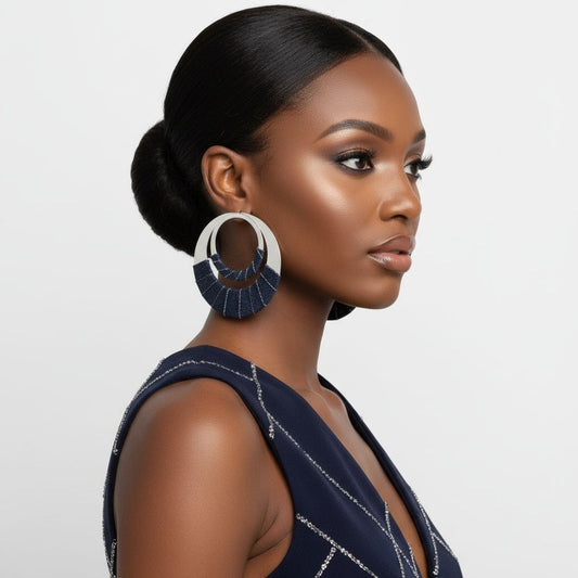 Hoop Denim Jeans Silver Bamboo Texture Earrings