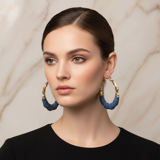 Hoop Denim Jeans Gold Bamboo Texture Earrings