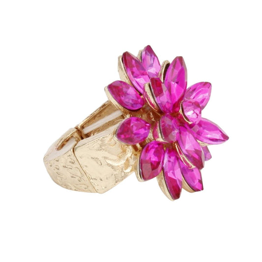 Cocktail Stacked Fuchsia Marquise Flower Gold Ring