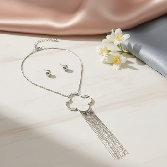 Pendant Silver Trending Quatrefoil Fringe Necklace