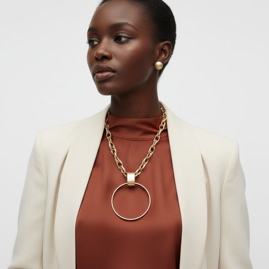 Pendant Gold Chunky Chain Large Ring Necklace