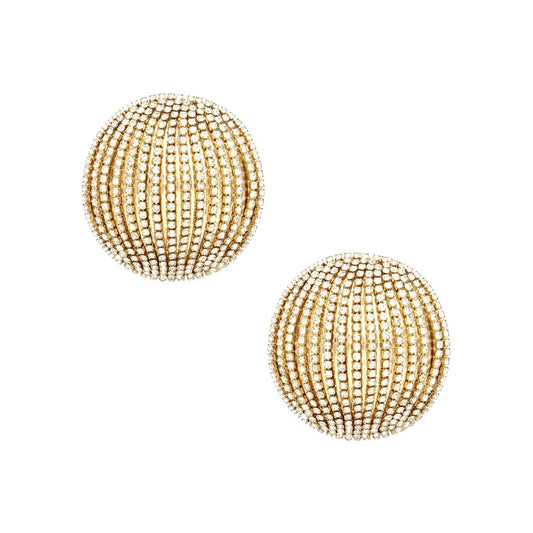 Stud Domed Gold Striped Shimmer Polished Earrings