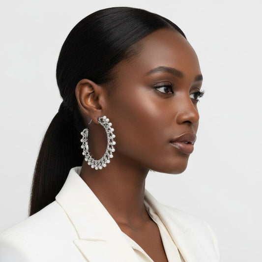 Gold Chain Open Hoops with Cream Pearl Earrings
