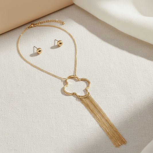 Pendant Gold Trending Quatrefoil Fringe Necklace