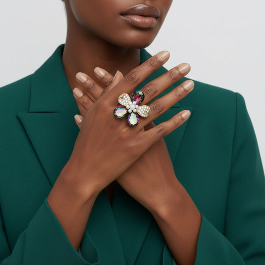 Cocktail Ring Mixed Green Teardrop Crystal Flower