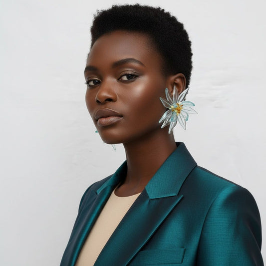 Stud Aqua Tropical Flower Oversized Petal Earrings