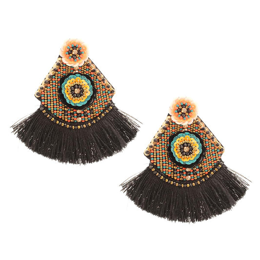 Rhinestone and Tassel Fuchsia Bee Earrings